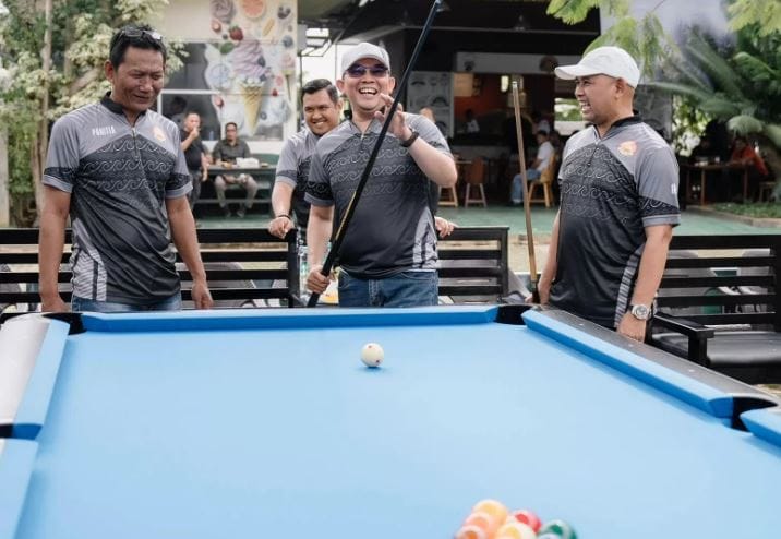 Momen unik tersaji dalam Aksi Cup Turnamen Biliar Open 2024, Jumat (18/10/2024) siang. Pada event tersebut, pasangan Calon Bupati dan Wakil Bupati Tanah Bumbu, Andi Rudi dan H. Bahsanudin (ARB), membuka turnamen dengan melakukan duel biliar.