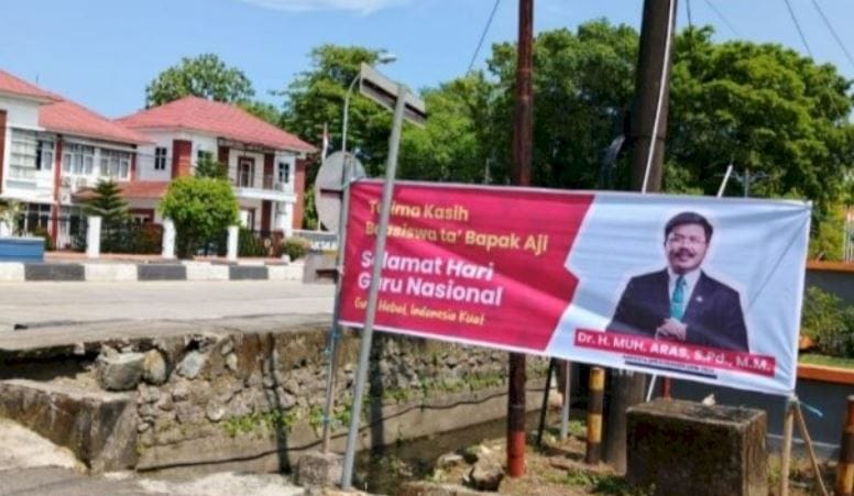 BARRU – “Terima Kasih Bapak Aji, Selamat Hari Guru Nasional.” Ucapan itu terpantau menyebar di beberapa titik di Kabupaten Barru, Sulawesi Selatan (Sulsel).