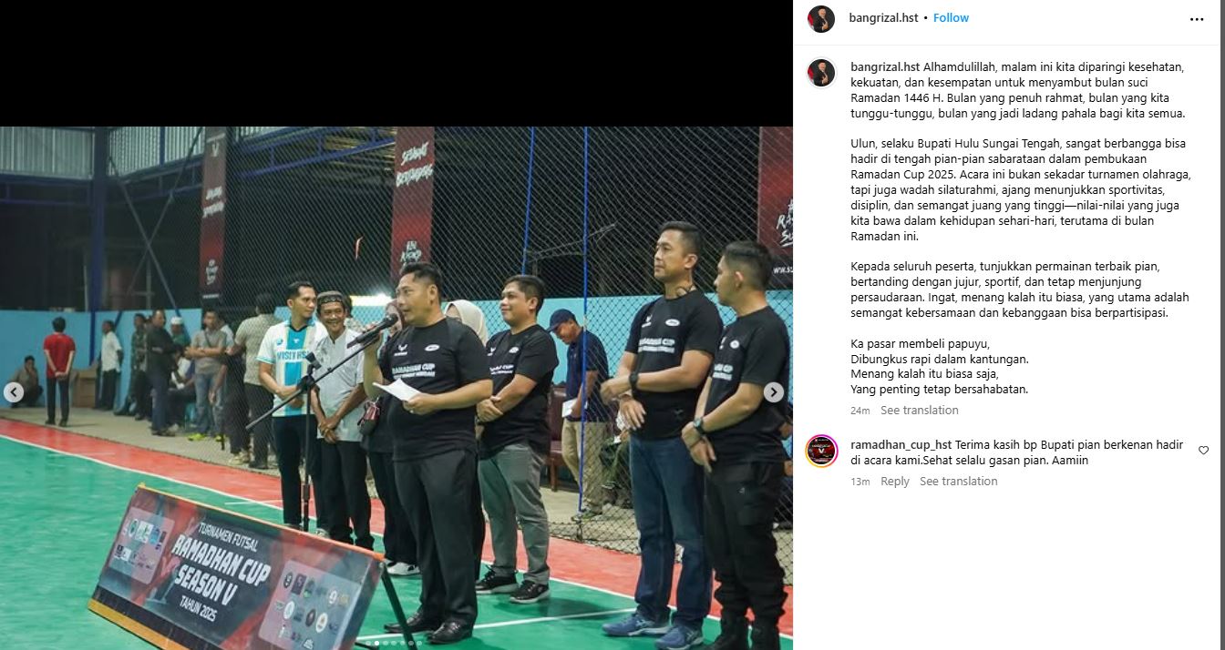 Dalam unggahannya di media sosial @bangrizal.hst mengungkapkan kebanggaannya bisa hadir bersama masyarakat HST dalam acara yang lebih dari sekadar kompetisi olahraga ini.