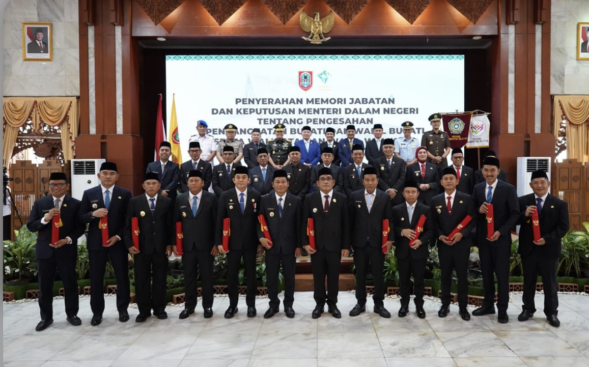 Arah-berita, Banjarmasin – Gubernur Kalimantan Selatan, H. Muhidin, secara resmi menyerahkan Memori Jabatan dan Keputusan Menteri Dalam Negeri (Mendagri) tentang Pengesahan Pengangkatan Bupati dan Wakil Bupati serta Walikota dan Wakil Walikota se-Kalimantan Selatan untuk Periode 2025-2030 di Gedung Mahligai Pancasila.(5/3/2025)