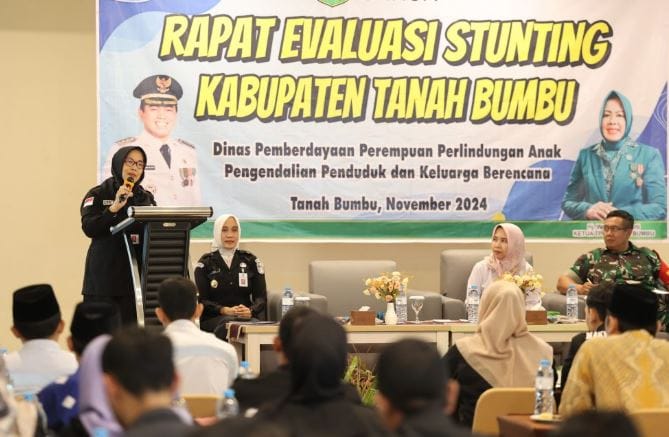 Tanah Bumbu – Pemerintah Kabupaten Tanah Bumbu (Pemkab Tanbu) melalui Dinas Pemberdayaan Perempuan, Perlindungan Anak, Pengendalian Penduduk dan Keluarga Berencana (P3AP2KB) melaksanakan rapat evaluasi percepatan penurunan stunting di Batulicin, Kamis (21/11/2024)