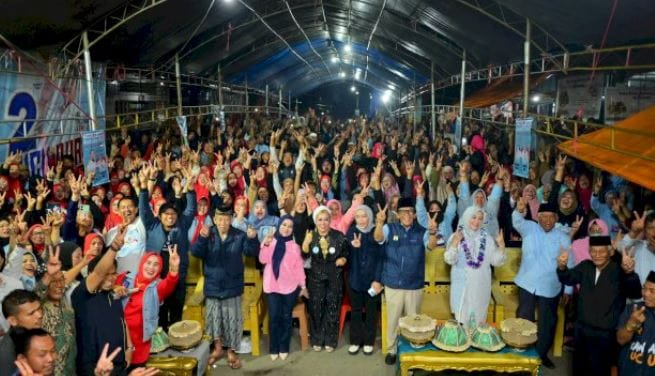 ENREKANG – Malam di Pasar Sentral Sudu, Kecamatan Alla, Kabupaten Enrekang, terasa berbeda. Pasar yang biasanya ramai aktivitas jual beli kini dipenuhi ribuan warga yang antusias menyambut calon wakil gubernur Sulawesi Selatan nomor urut 2, Fatmawati Rusdi, Senin (4/11/24).